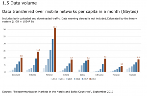 Trenden fortsätter att vi i Sverige inte har lika stark tillväxt som andra länder. Finland drar ifrån ännu mer trots sin redan stora förbrukning av data.